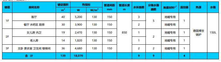 地暖系統技術配置表