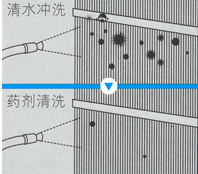 使用的專業(yè)藥劑為何分為"清洗劑"和"中和劑"? 因?yàn)槿ノ哿?qiáng)的清洗劑往往對翅片有較強(qiáng)的腐蝕性,而溫和型藥劑的清潔能力較弱。 惠馳使用的專業(yè)清洗劑保證了強(qiáng)有力的去污能力,而專業(yè)中和劑能夠中和清洗劑的腐蝕性,保證翅片不被腐蝕,做到去污,耐腐兩全其美。